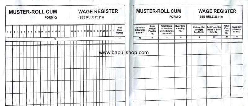 or by placing order for Form Q Muster Roll Wage register from this page,